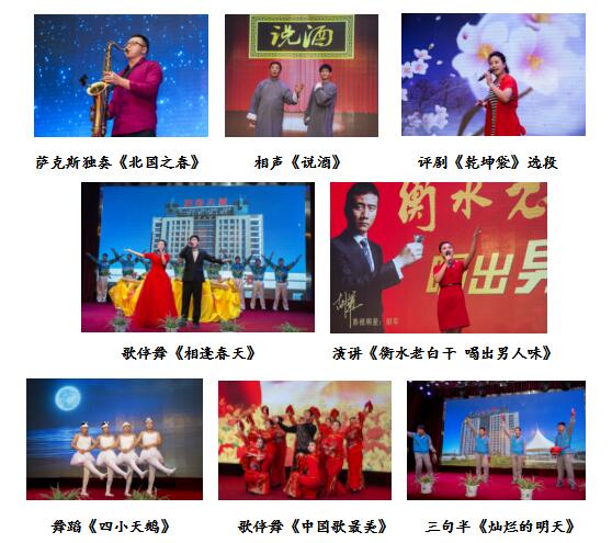 聯(lián)歡會在公司舞蹈隊帶來的《相逢春天》中正式拉開帷幕,表達了職工對公司明天最美好的祝福。緊接著,動力車間的劉善春一首悠美動聽的薩克斯獨奏《北國之春》,讓觀眾聽的如癡如醉,仿佛聞到了春天的氣息。制酒二車間沈明光、趙世威帶來的相聲《說酒》,以詼諧幽默的說詞,向觀眾闡述了自古至今“酒”成就了詩人許多關(guān)于“酒”的詩詞佳作。包二車間和鳳雙帶來的評劇《乾坤袋》選段讓大家領(lǐng)略到了評劇的魅力。營銷公司谷麗君也把參加全國第四屆品牌故事演講比賽的作品帶到了舞臺上,《衡水老白干 喝出男人味》,向我們娓娓講述了解放前老一輩的老白干人英勇抗日,不屈不撓的抗戰(zhàn)精神,用血性、責任、擔當,將燕趙兒女的骨氣、豪氣和壯氣展現(xiàn)的淋漓盡致。制曲車間的舞蹈《天鵝湖》,精彩滑稽的表演不時讓觀眾捧腹大笑。包二車間何永安、周長爽等帶來的歌伴舞《中國歌最美》,向觀眾傳遞了中國歌的魅力。制酒一車間郭金健等帶來的三句半《燦爛的明天》,將公司2016年所做出的成績一一做了匯報,使廣大職工更加了解企業(yè)發(fā)展狀況。