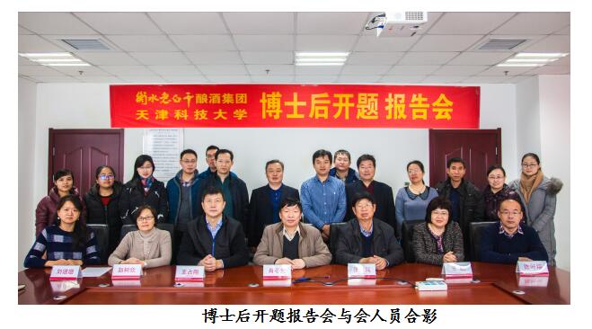 2017年12月20日上午,公司博士后開題報告會在酒都大廈1004會議室隆重召開,出席會議的有天津科技大學王敏院長、肖東光教授、趙樹欣教授、陳葉福教授、劉璐璐處長,集團公司副董事長張志民、酒業(yè)公司總經(jīng)理王占剛、酒業(yè)公司常務副總張煜行、技術中心主任李澤霞等。